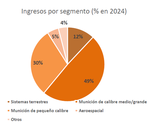 La empresa se centra en dos segmentos principales: Defensa (61 % de los ingresos) y munición de pequeño calibre (30 % de los ingresos). El segmento de Defensa incluye munición de calibre medio/grande (49 % de los ingresos) y sistemas terrestres (12 % de los ingresos). El segmento de munición de pequeño calibre se destina principalmente al mercado civil (91% de los ingresos del segmento).